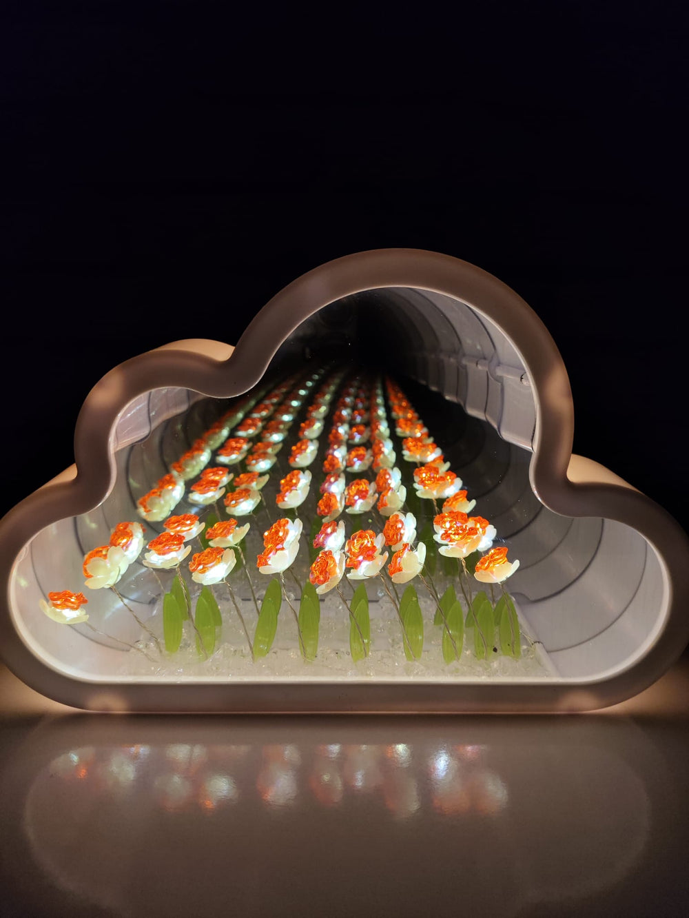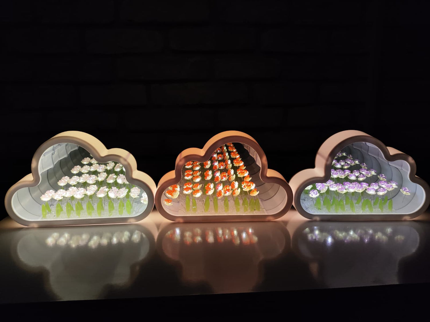 Işıklar kapanınca ayna gibi görünen küçük bulut düğmesinde basılır basılmaz büyülü bir Sonsuz Gül Bulutuna dönüşür. Odasının havasını değiştirmek isteyenlerin tam aradığı ürün.